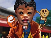 何ピースにも分割した顔パーツを組み合わせ、自在に表情をつくり出すことに成功。メリーゴーランドの馬は、実際に紙粘土で立体を作成。ラストの写真には、フラッシュを焚いた時の赤目現象を再現する等、技術的な面でいろいろな実験を試みた作品。